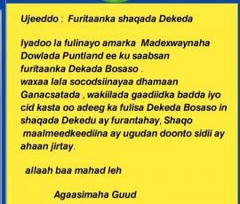 Shaqada Dekeda Bosaso dib u bilaamaysa